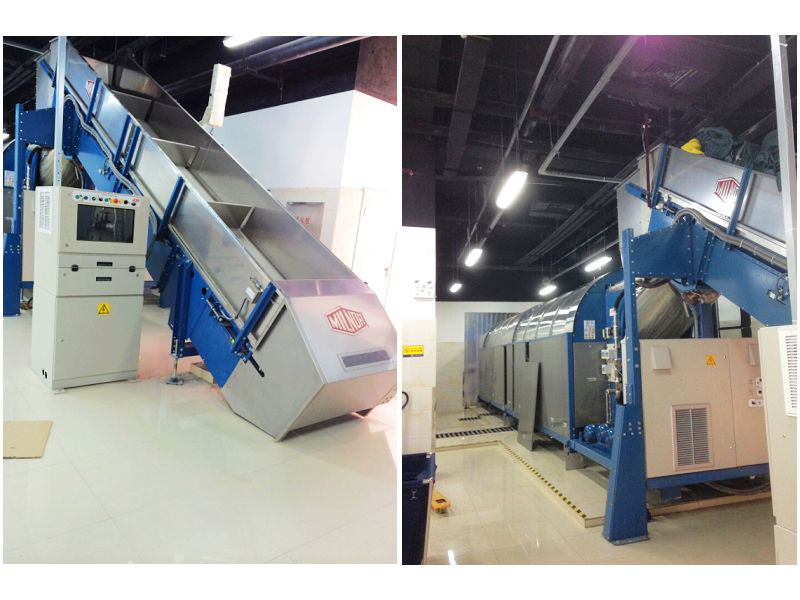 盛京醫(yī)院洗滌中心的設(shè)計產(chǎn)出為20噸/天,全部設(shè)備為深圳中施機(jī)械設(shè)備有限公司提供。其中洗衣龍系統(tǒng)為美國Milnor“美羅”品牌,設(shè)備組成有1條8倉(68KG)脈沖洗衣龍,1臺MP1640壓水機(jī)(40BAR),3臺MT140貫穿式烘干機(jī)(140KG)以及配套穿梭傳送系統(tǒng)。