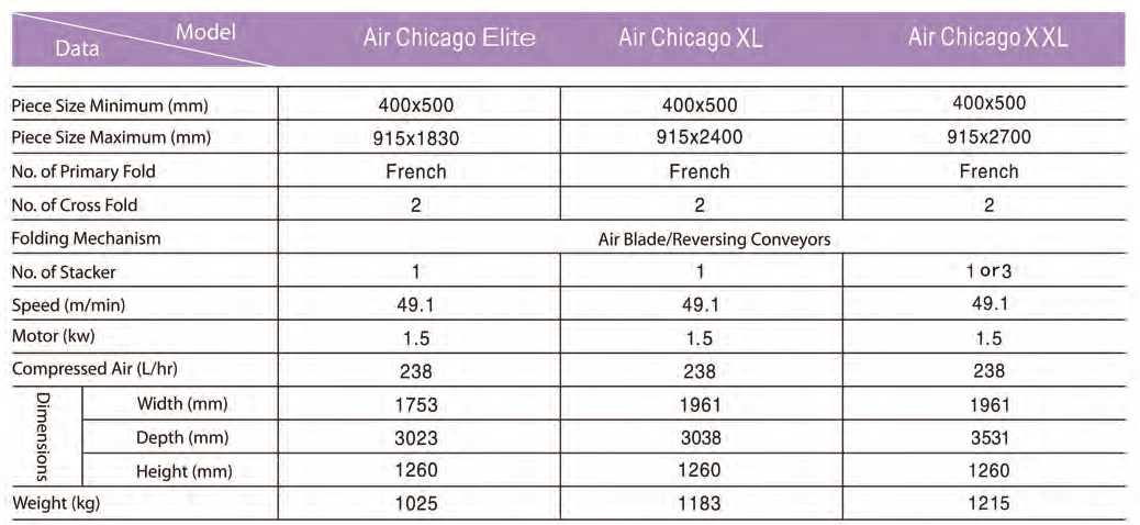 · Folded items are stacked on delivery conveyor which can be installed in a choice of discharge directions.