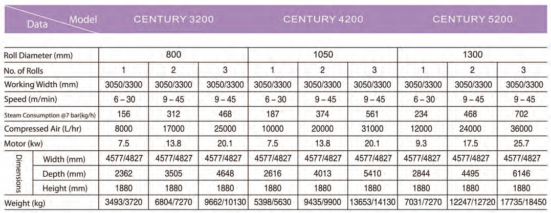 · Available in a choice of 32”(800mm), 42”(1050mm) or 52”(1300mm) diameter rolls. Available in 1 to 4 rolls.