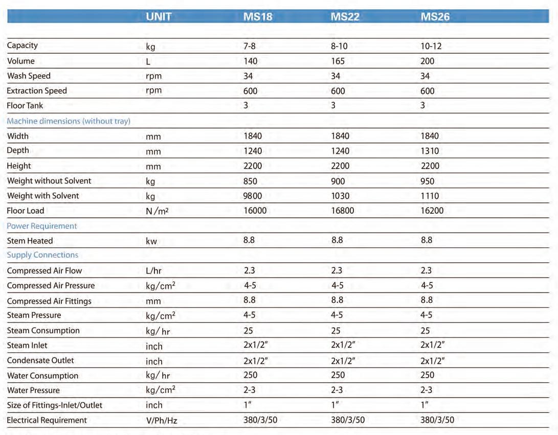 These machines have been designed for the new breed of hydrocarbon and alternative solvents. The technology incorporated into the design is sophisticated, yet simple. Both the specialty cleaner and general operator will find its ease of operation and simplicity a major advantage over other processing method.
