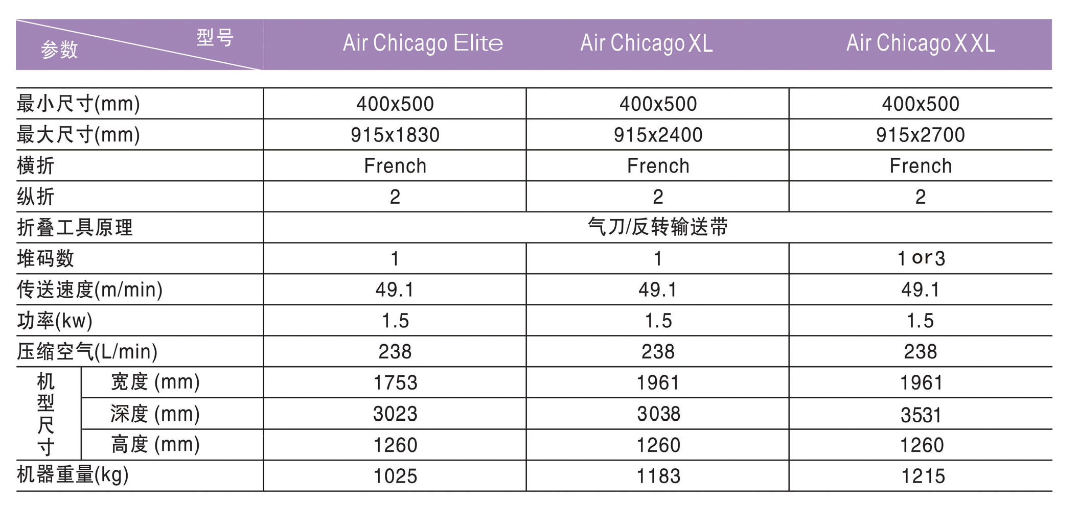 · 折疊后的堆碼可傳送至能選擇安裝與不同方向的傳送帶